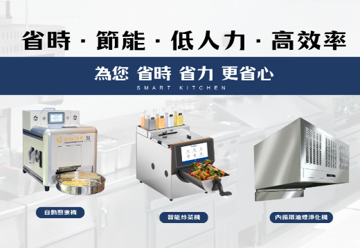 我們致力於引進並開發智能餐廚設備,協助餐飲業者迎戰人力問題、提升營運效率。從【智能炒菜機】、【智能盛飯機】、【無煙智能電炸爐】、【內循環油煙淨化機】、【自動煎蛋機】到【客製化流水線自動打飯系統】,持續拓展設備種類,打造餐廳智能化、流程標準化的完整解決方案。
